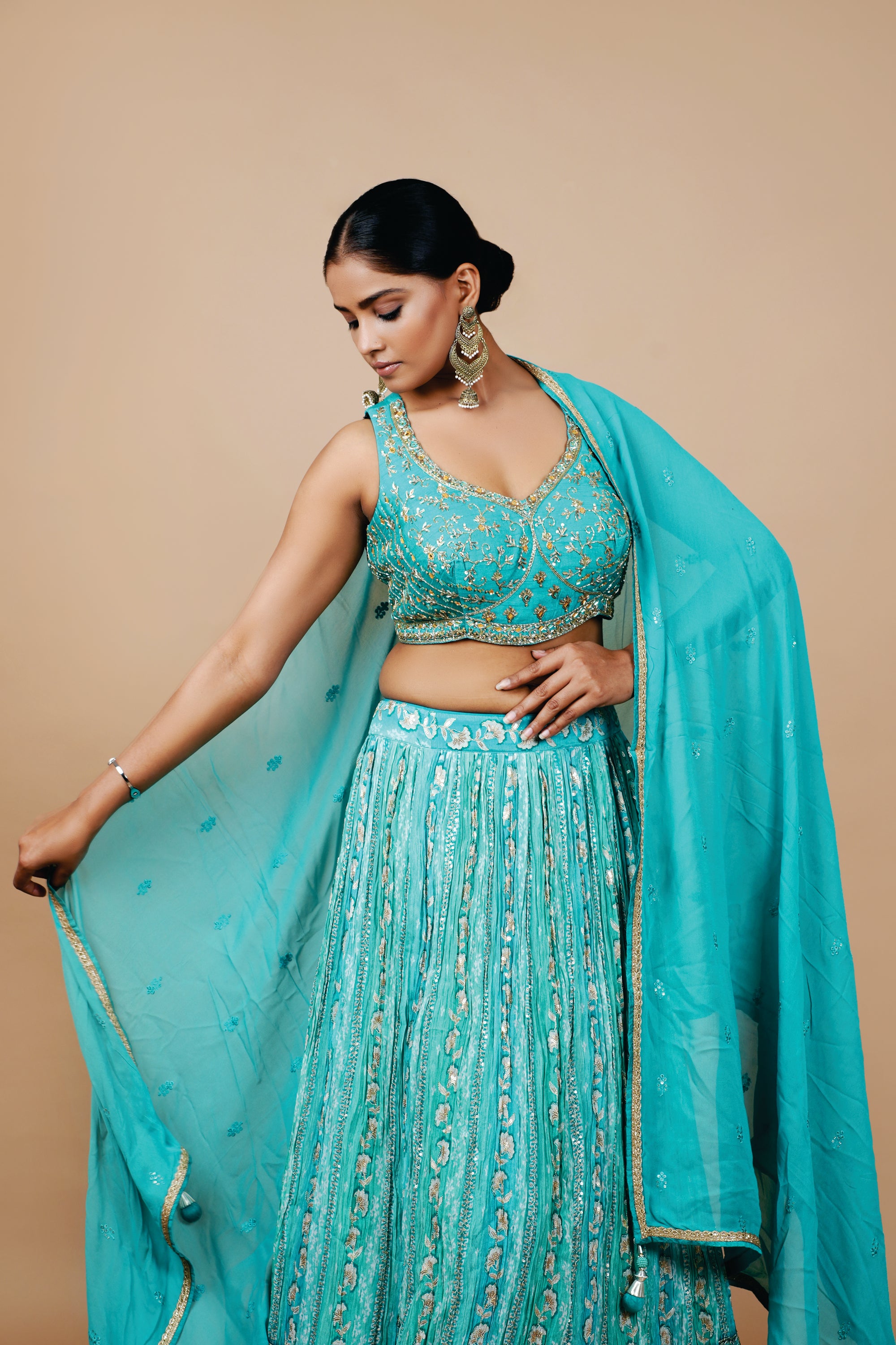 Elevate your wardrobe with our stunning Blue Pure Viscose Crop-top featuring intricate handwork detailing on the blouse. Crafted with care and precision, this crop-top exudes elegance and charm, making it perfect for both casual outings and special occasions. The luxurious feel of pure viscose fabric ensures comfort while maintaining a chic silhouette. Pair it with your favorite high-waisted bottoms for a trendy look that effortlessly transitions from day to night. Make a style statement with this versatile piece that combines classic sophistication with contemporary flair. Shop now and add a touch of timeless beauty to your collection.