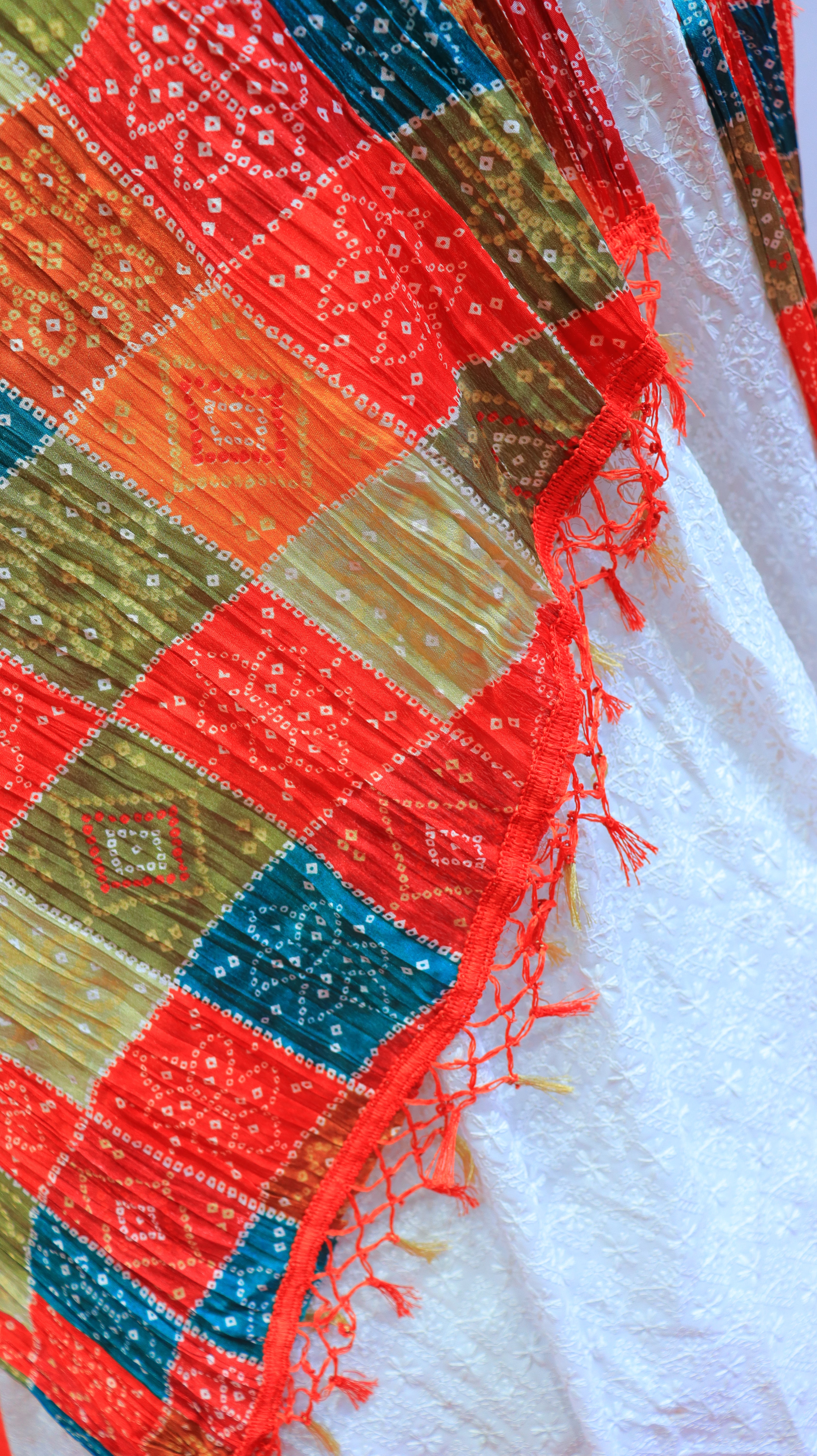 Make a bold yet graceful statement with this Exquisite White Dress, beautifully paired with a vibrant, colorful dupatta. The dress features a clean, timeless silhouette that offers a flattering fit, while the eye-catching dupatta adds a pop of rich color and intricate design. Whether you're attending a festive celebration or a special event, this ensemble exudes elegance and charm. The contrast between the crisp white dress and the vivid dupatta creates a stunning visual balance, making this a must-have piece for those who love to stand out in style.