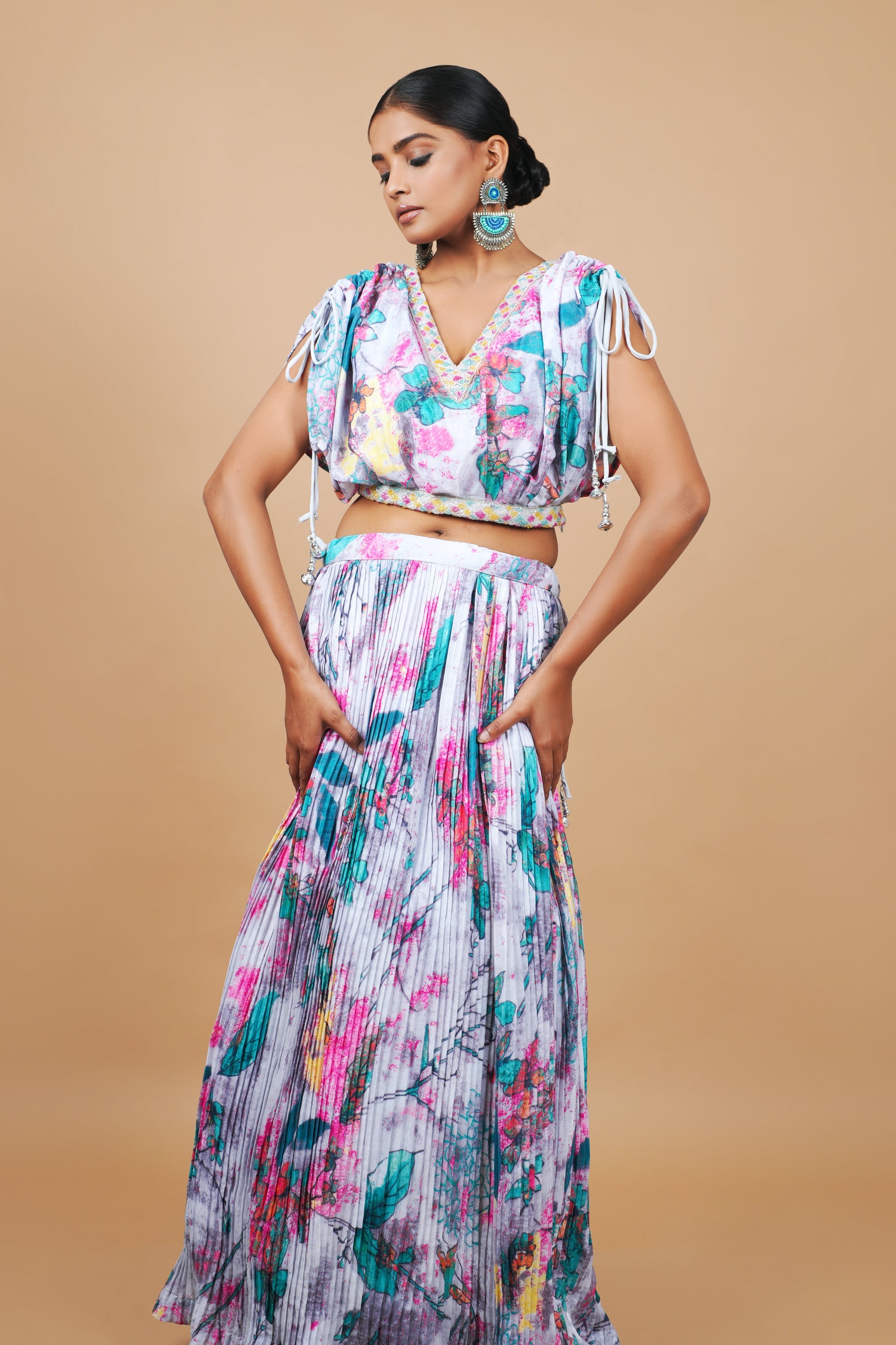 Elevate your wardrobe with our stunning Multi-Color Digital Print Crop Top with Fancy Blouse. Designed to captivate, this ensemble effortlessly merges contemporary style with timeless elegance. Crafted with meticulous attention to detail, the crop top features a vibrant digital print in an array of captivating colors, adding a touch of whimsy and sophistication to your look. The playful yet chic design ensures you stand out from the crowd with every wear. Paired with a fancy blouse boasting intricate embellishments and exquisite craftsmanship, this ensemble exudes an air of luxury and refinement. Whether you're attending a special event or simply looking to make a statement, this ensemble is sure to turn heads and leave a lasting impression.