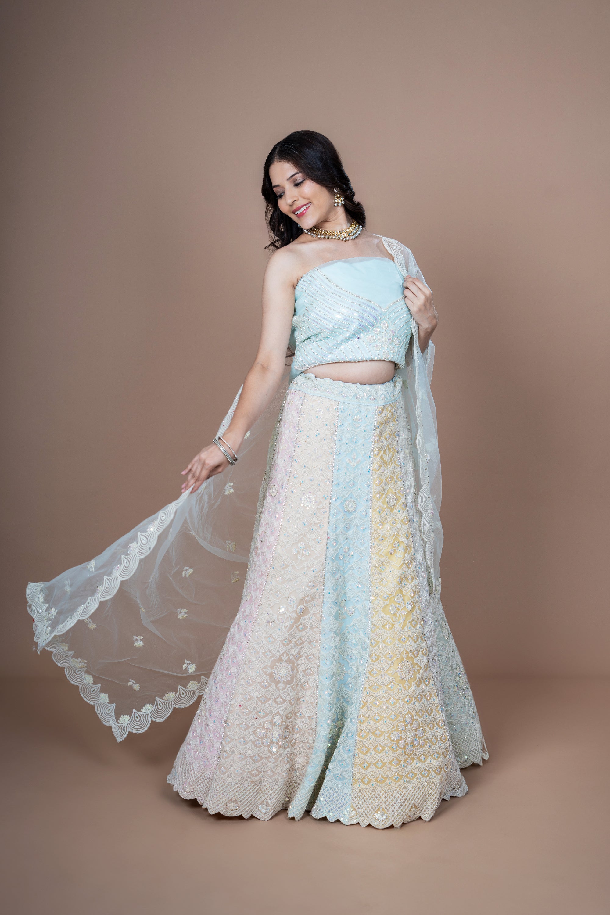 Elevate your ethnic wardrobe with our exquisite Multi-Color Georgette Embroidery Work Lehenga with Dupatta. Crafted with meticulous attention to detail, this stunning ensemble is a perfect blend of traditional craftsmanship and contemporary design.The georgette fabric lends a graceful drape to the lehenga, ensuring a flattering silhouette for every body type. Intricate embroidery work adorns the lehenga, adding a touch of elegance and charm. The vibrant multi-color palette enhances the beauty of the ensemble, making it ideal for festive occasions, weddings, and celebrations.Paired with a matching dupatta, featuring complementary embroidery and a delicate border, this ensemble exudes sophistication and grace. Whether you're attending a wedding ceremony or a cultural event, this lehenga will make you stand out with its timeless appeal and exquisite craftsmanship.