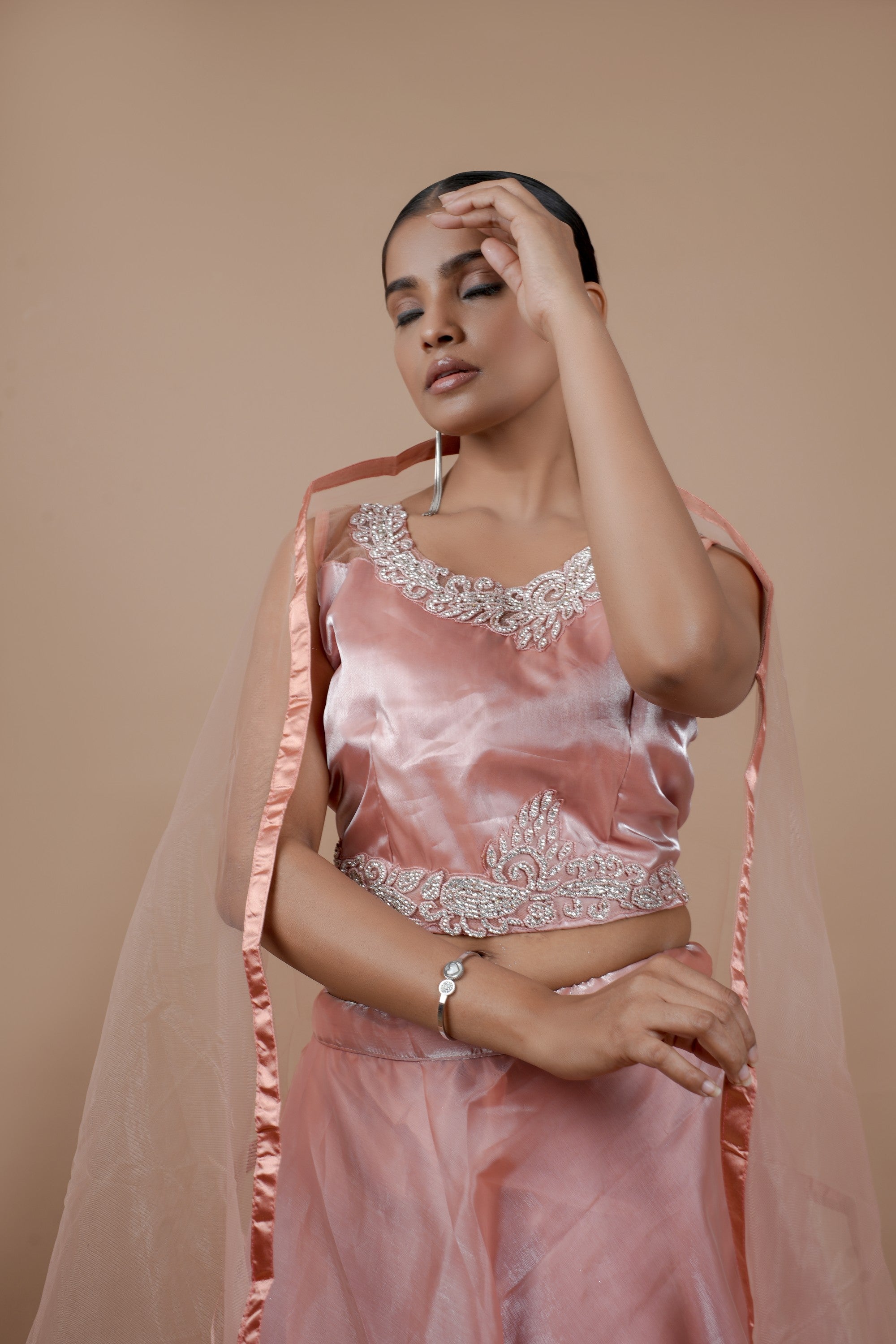 Elevate your style with our stunning Peach Jimmy Choo Crop-top, meticulously adorned with intricate Moti handwork. Crafted to perfection, this crop-top exudes elegance and charm, making it the perfect choice for both casual outings and special occasions. The soft peach hue complements a variety of skin tones, while the luxurious Jimmy Choo fabric ensures comfort and durability. Whether paired with jeans for a chic daytime look or with a flowing skirt for an evening affair, this crop-top is sure to make a statement wherever you go. Experience the fusion of contemporary fashion and traditional craftsmanship with our Peach Jimmy Choo Crop-top, designed to accentuate your individuality and flair.