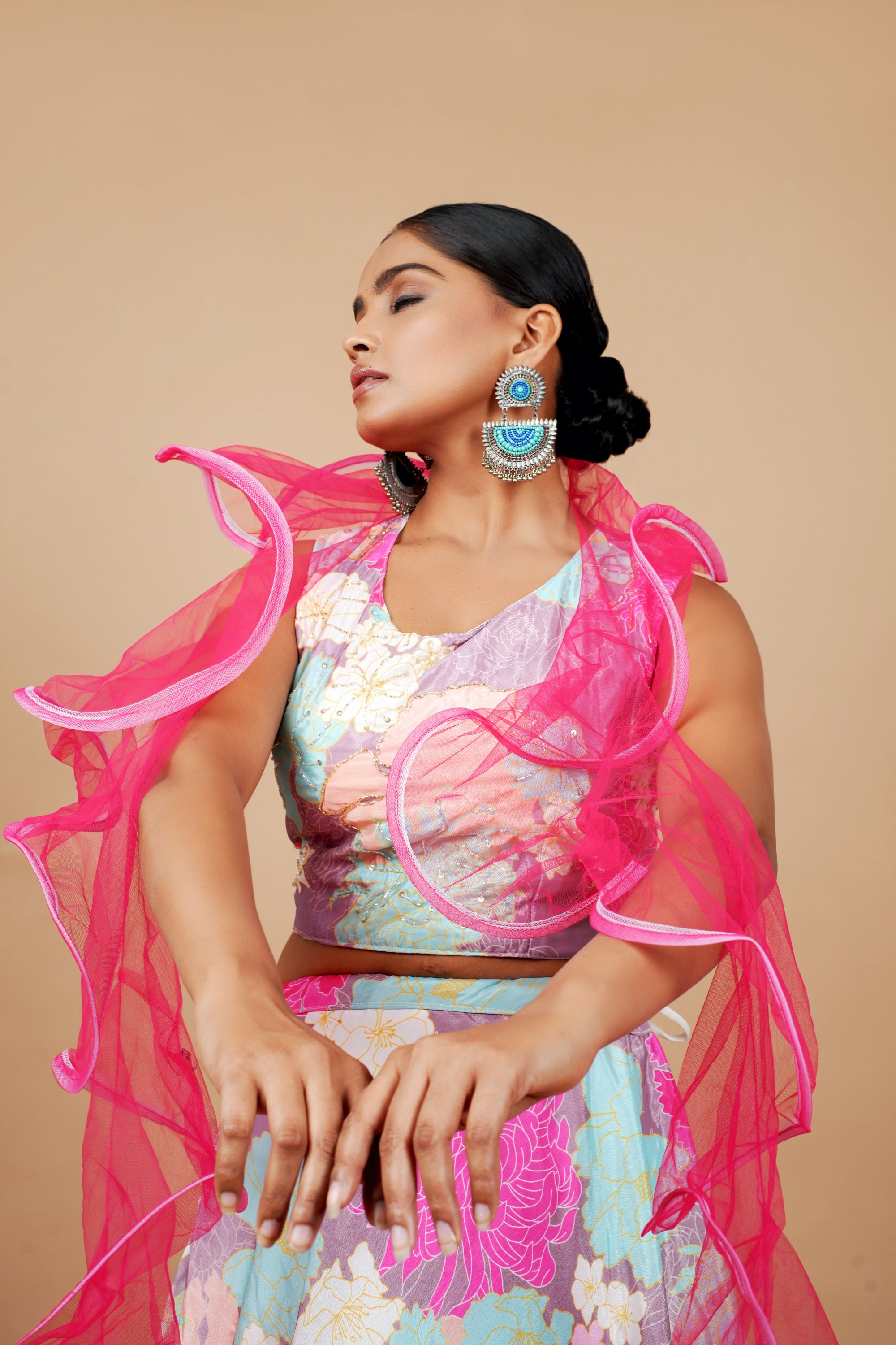 Welcome to our collection featuring the Pink Soft Silk Crop-top with Digital Print! Elevate your wardrobe with this stunning piece crafted from luxurious soft silk fabric, ensuring both comfort and style. The intricate digital print adds a touch of sophistication and uniqueness to this crop-top, making it a standout choice for any occasion. Whether you're dressing up for a night out or looking to add a chic twist to your everyday ensemble, this crop-top promises to make a statement. Explore our collection now and discover the perfect blend of elegance and contemporary fashion with our Pink Soft Silk Crop-top with Digital Print.