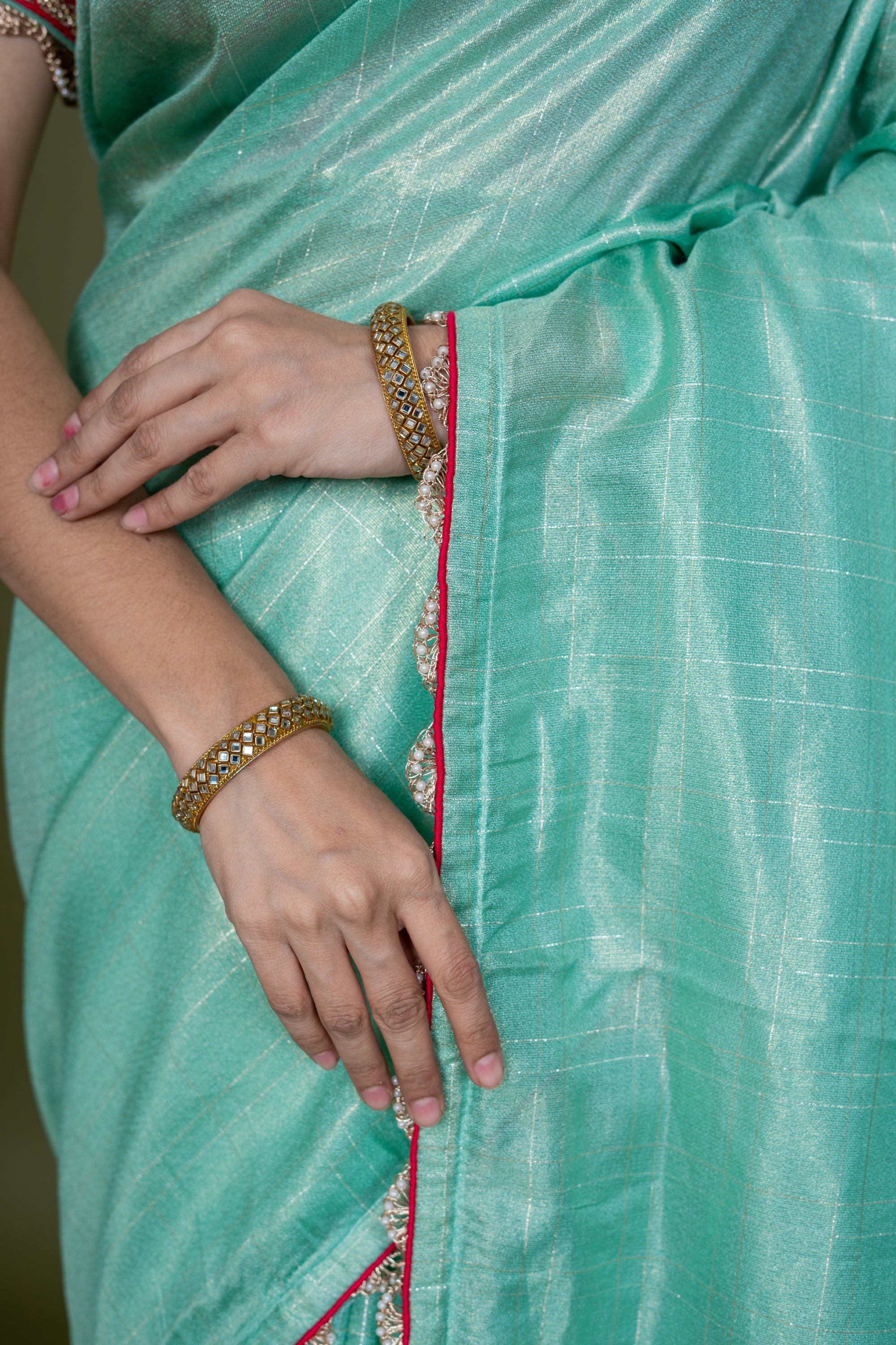Elevate your ethnic wardrobe with our exquisite Pista Green Jari Cotton Saree paired with a stunning Banarasi Blouse. Crafted with precision, this saree boasts intricate Jari work that adds a touch of elegance and charm to your ensemble. The soft and breathable cotton fabric ensures comfort while draping, making it perfect for all-day wear. The complementary Banarasi Blouse enhances the traditional appeal of the saree, featuring intricate patterns and fine craftsmanship. Whether it's a festive occasion or a cultural event, this ensemble is sure to make you stand out with its timeless beauty and classic allure. Embrace tradition with a modern twist with this captivating saree ensemble.