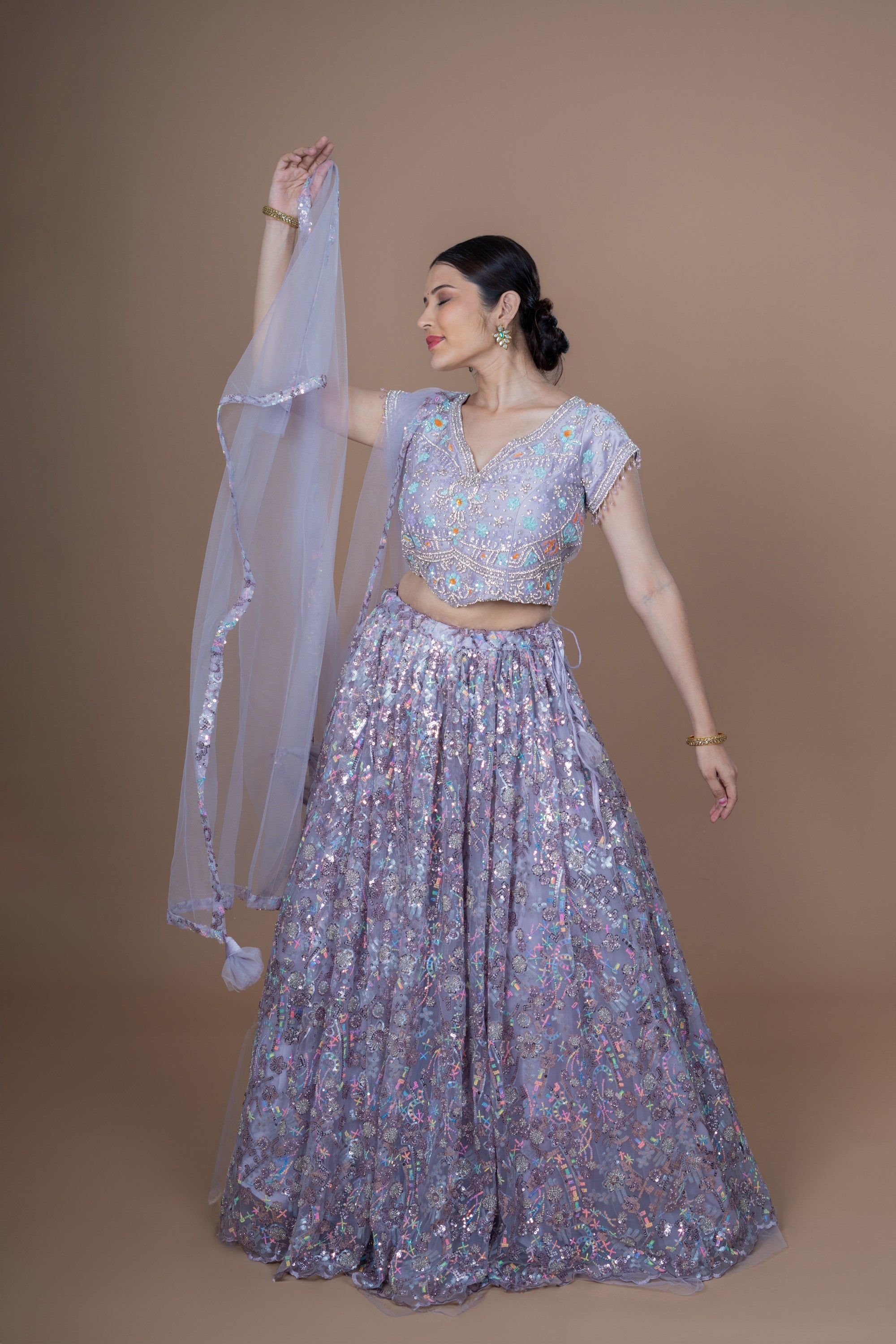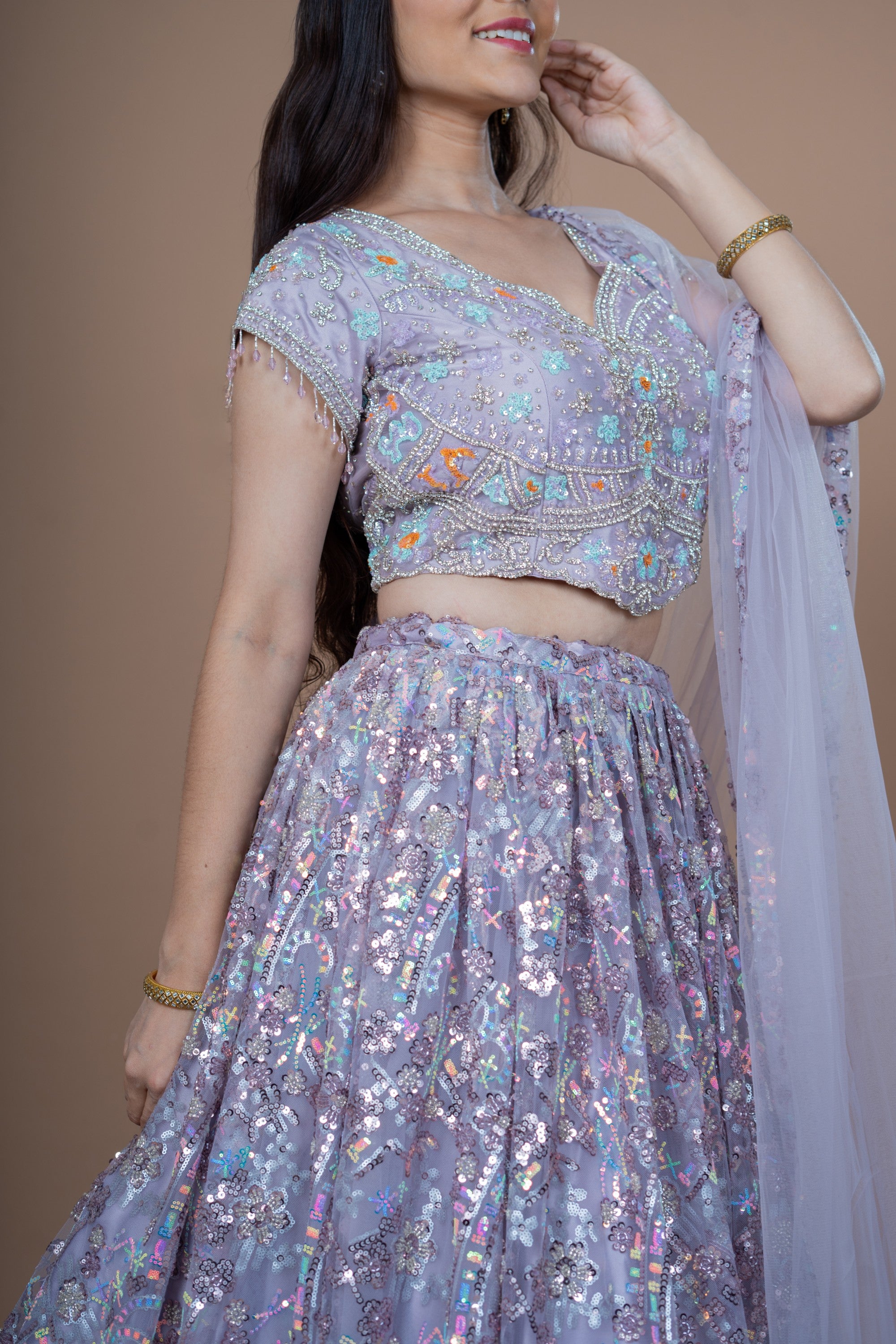 Elevate your style with our stunning Purple Net Crop-Top adorned with intricate sequin handwork. Crafted with meticulous attention to detail, this crop-top exudes an aura of sophistication and charm. The rich purple hue complements a variety of skin tones, while the delicate net fabric adds a touch of ethereal beauty. Perfect for a night out or special occasions, this crop-top effortlessly combines modern flair with timeless elegance. Make a statement and turn heads wherever you go with this exquisite piece. Shop now and add a touch of glamour to your wardrobe!
