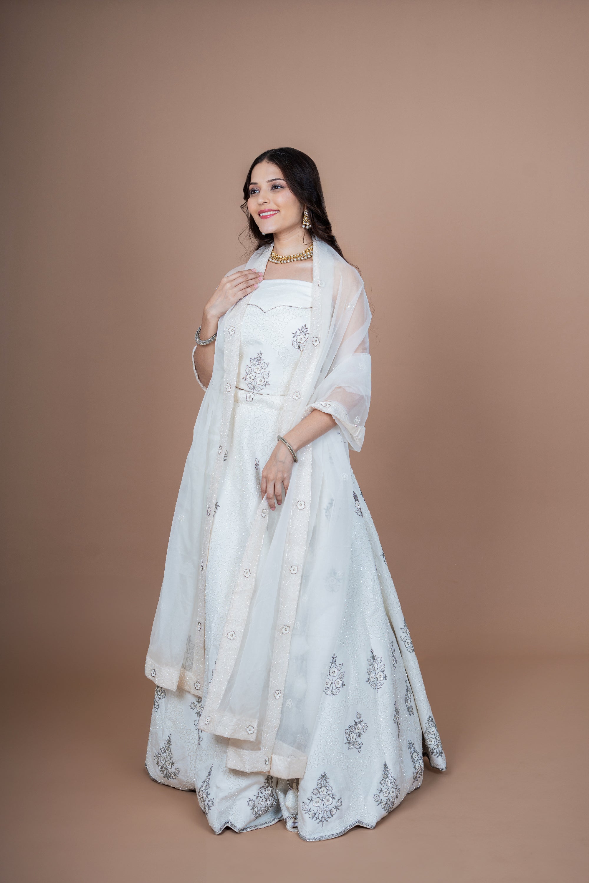 Elevate your style with our exquisite White Silk Hand Work Lehenga paired with a stunning Dupatta. Crafted with meticulous handwork, this lehenga set exudes elegance and grace, perfect for special occasions such as weddings, receptions, or festive celebrations. Made from luxurious silk fabric, the white hue adds a touch of sophistication, while intricate handwork detailing enhances its allure. The lehenga features a flattering silhouette that accentuates your curves beautifully, making you feel like a true royalty. Shop our White Silk Hand Work Lehenga With Dupatta and experience the epitome of timeless beauty and craftsmanship.